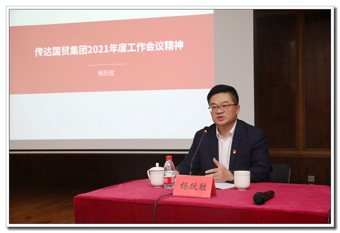 會上,公司總經(jīng)理楊躍勝傳達(dá)了省國貿(mào)集團(tuán)2021年度工作會議精神。楊總強(qiáng)調(diào),一是要迅速把國貿(mào)集團(tuán)年度工作會議精神傳達(dá)到每一位員工,凝聚發(fā)展共識,堅決做到“集團(tuán)有號召、層層見行動”;二是要進(jìn)一步校準(zhǔn)坐標(biāo)、完善規(guī)劃,提高工作的戰(zhàn)略性、前瞻性、科學(xué)性、協(xié)同性、能動性;三是要積極展現(xiàn)“開局即決戰(zhàn)、起步即沖刺”的戰(zhàn)斗姿態(tài),奮力奪取一季度“開門紅”,為“十四五”開好局奠定堅實基礎(chǔ)。