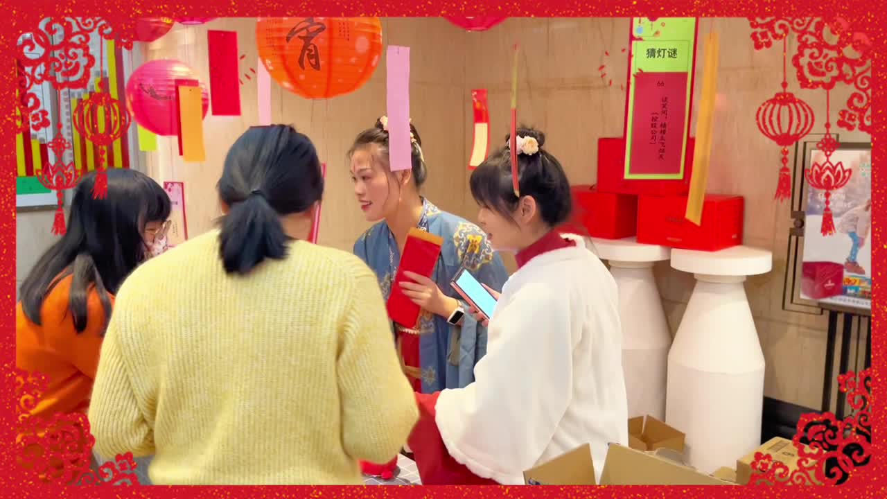 2月3日中午,浙江土畜工會(huì)組織開(kāi)展元宵猜燈謎活動(dòng),公司三樓人頭攢動(dòng)、熱鬧非凡,廳里錯(cuò)落別致懸掛了一盞盞喜慶的紅燈籠,燈下都有五光十色的謎箋,吸引了許多員工駐足競(jìng)猜,有的看著謎面低頭沉思,有的與同伴相互討論,領(lǐng)獎(jiǎng)桌旁也是絡(luò)繹不絕。紅紅火火燈籠與熙熙攘攘的人群交相輝映,洋溢著濃濃的“土畜年味兒”。