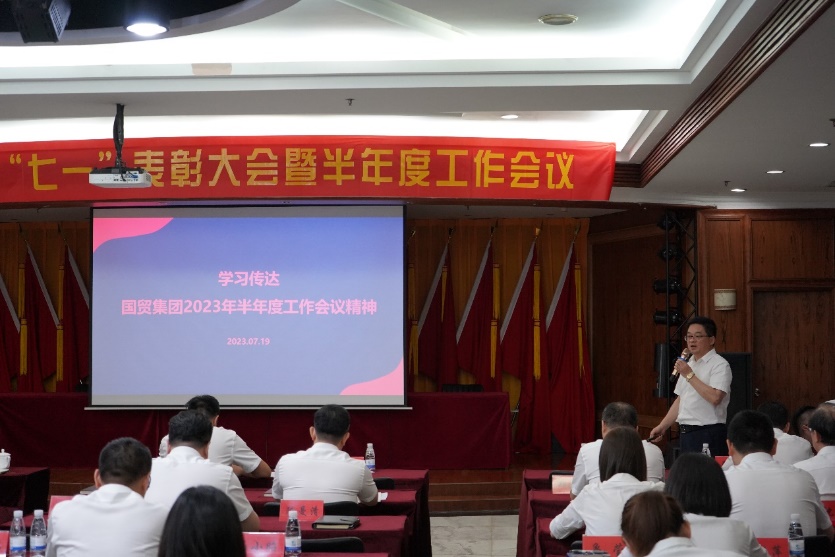 公司黨委副書記、總經理楊躍勝傳達了省國貿集團半年度工作會議的精神,并作《搶訂單 穩外貿 優結構 全力以赴落實全年目標任務》報告分析上半年經營情況,對下半年工作進行了部署上半年,公司按照集團部署,以積極的態勢抓住機遇、爭取訂單,確保進出額逐步增長,經營業績穩步提升。他要求全體職工要在加強黨的建設穩定進出口主業推動雙循環拓進口內貿深化科工貿融四輪驅動項目投資改革創新管理提升風險控制六方面,打好下半年攻堅戰,努力實現全年目標。